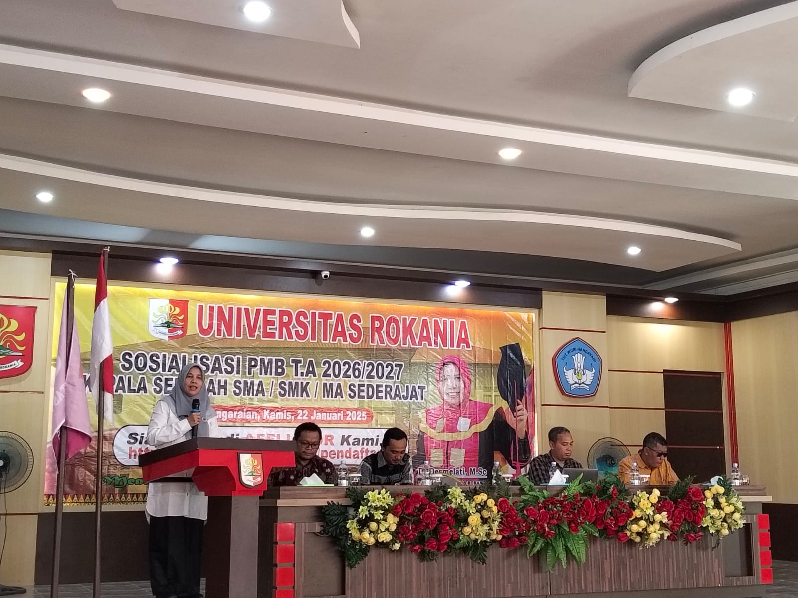 Rokan Hulu (24/01/2026) – Universitas Rokania menyelenggarakan kegiatan Sosialisasi Penerimaan Mahasiswa Baru (PMB) Tahun Akademik 2026/2027 pada Kamis, 22 Januari 2026, bertempat di Kampus Universitas Rokania. Kegiatan ini diikuti oleh para kepala sekolah SMA/MA/SMK sederajat se-Kabupaten Rokan Hulu sebagai bagian dari upaya strategis mempererat sinergi antara perguruan tinggi dan satuan pendidikan menengah.