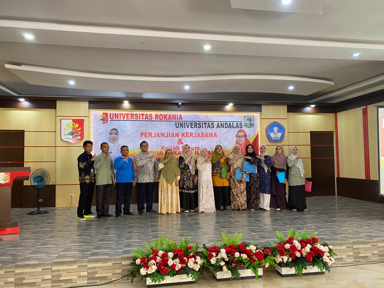 Pihak Univ Rokania dan Unand berfoto bersama setelah kuliah umum (foto: humas rokania)